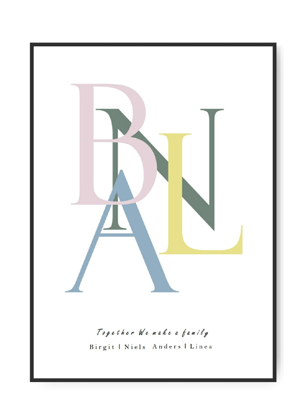 Familie Bogstav plakat, 4 valgfrie bogstaver og tekst