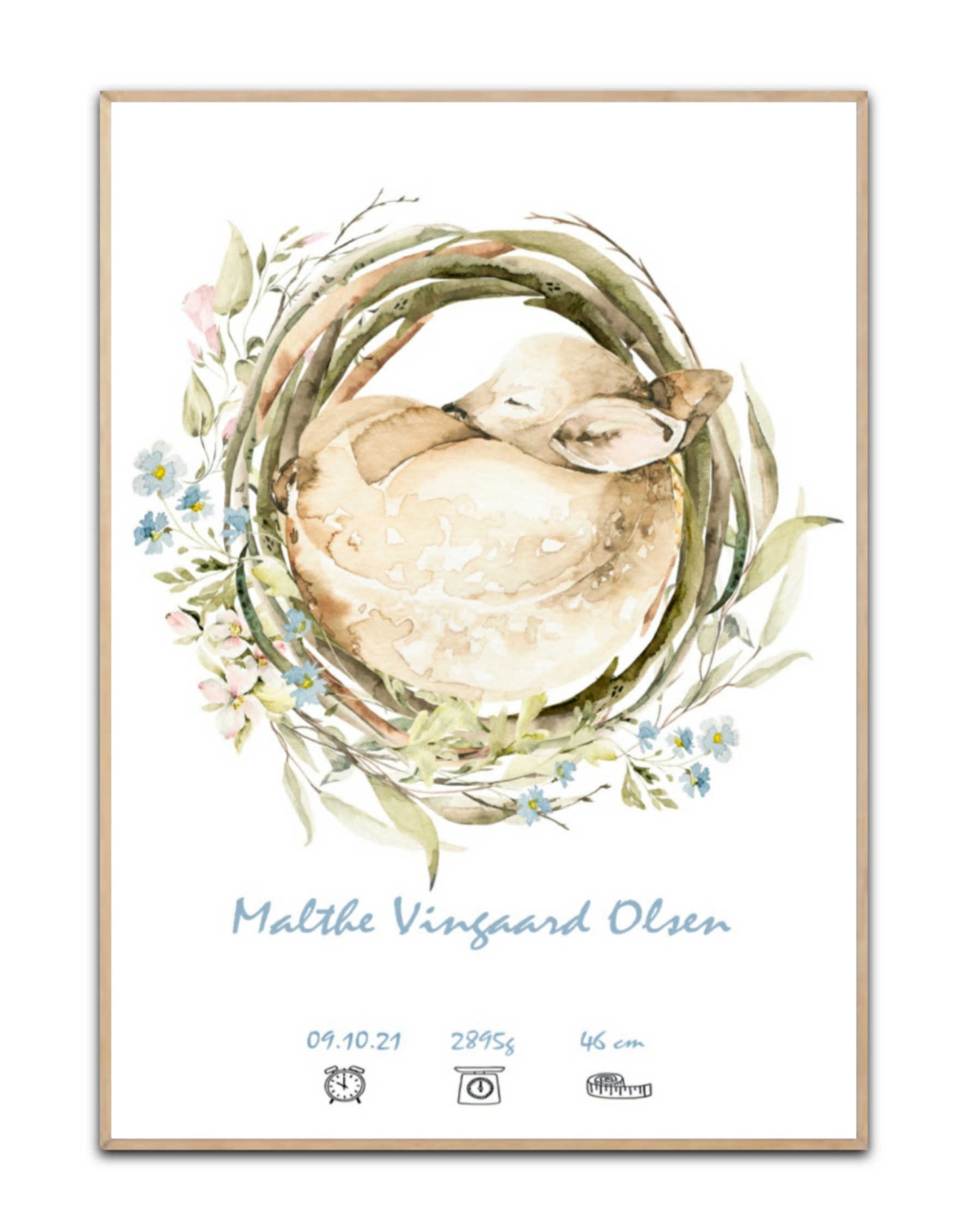 Fødselsplakat Hjort, med valgfrit navn og data