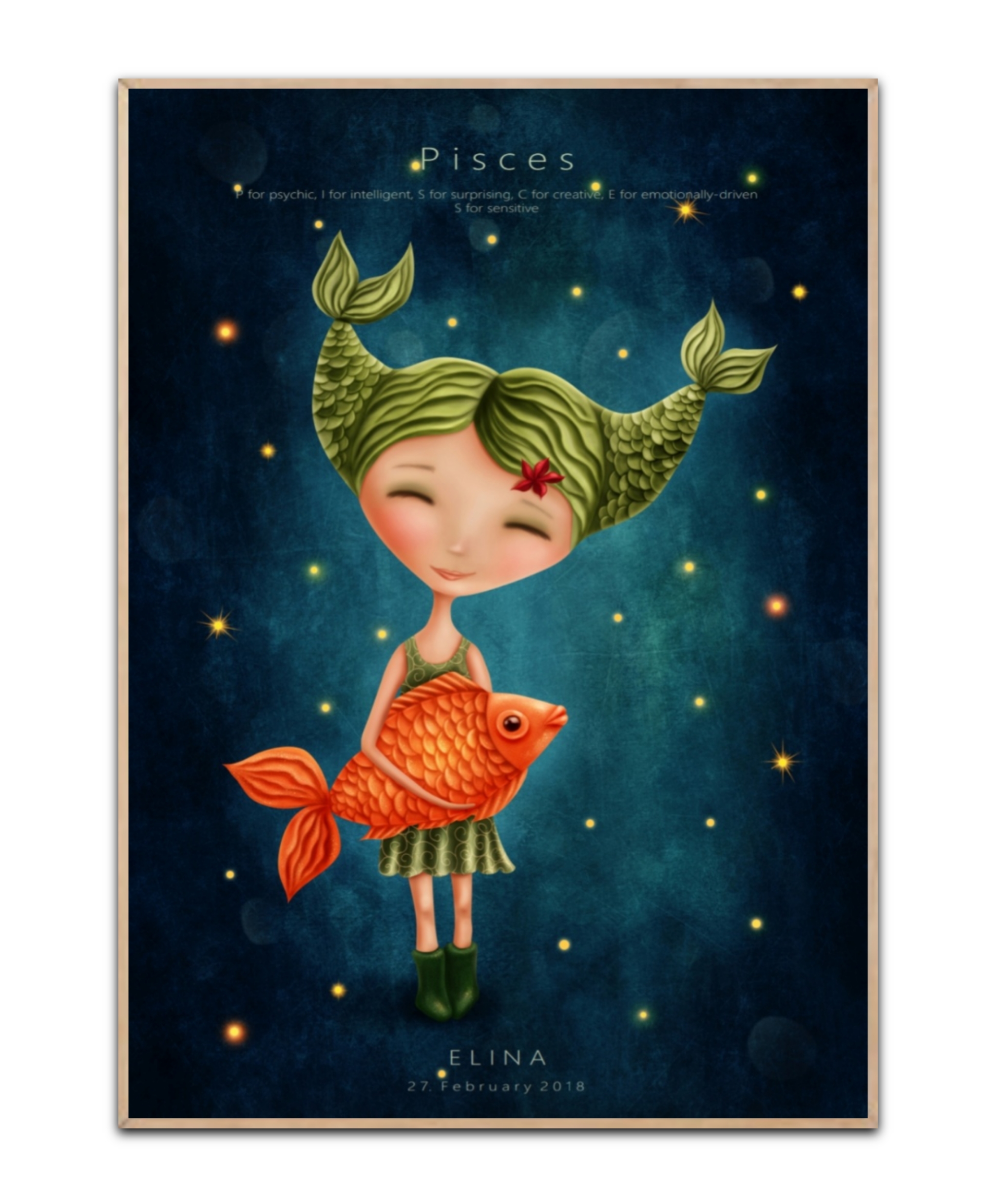 Stjernetegn Fisken pige, med valgfrit navn og Dato
