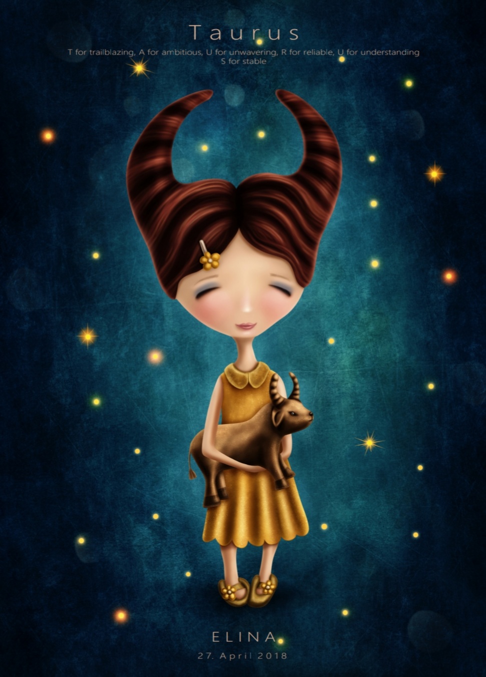 Stjernetegn Tyren pige, med valgfrit navn og Dato